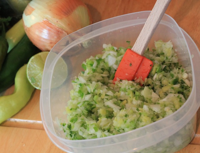 I used to chop everything by hand. Yikes! No wonder I never made salsa. Then I tried the food processor, but it always came out so runny, or with giant onion chunks. Then I finally figured out how to make salsa in the food processor; in two batches.
